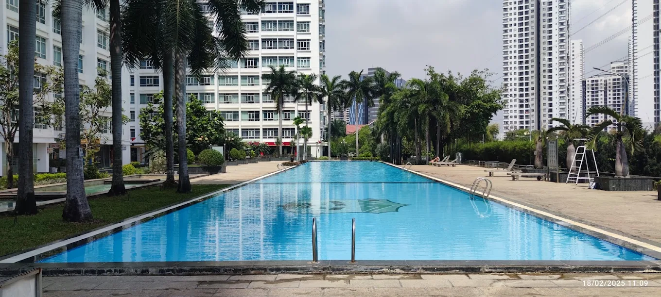 Chất lượng nước là một trong những niềm tự hào lớn nhất của hồ bơi chung cư Phú Hoàng Anh. Hồ được trang bị hệ thống lọc nước tuần hoàn theo công nghệ hiện đại, hoạt động liên tục để loại bỏ cặn bẩn và vi khuẩn. Nhờ vậy, nước trong hồ luôn giữ được độ trong xanh và sạch sẽ, mang lại cảm giác an tâm tuyệt đối cho người bơi.